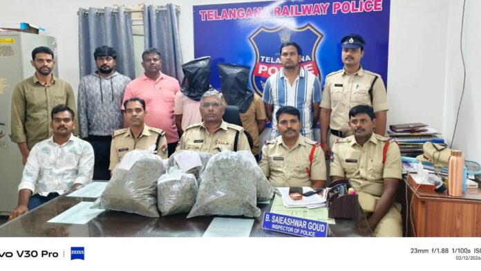Two persons were arrested with 18 kilograms of dry ganja worth ₹9.14 lakh while they were transporting the banned substance from Balugaon in Odisha to Secunderabad during an operation by the Government Railway Police (GRP) and the Railway Protection Force (RPF) at Secunderabad Railway Station.