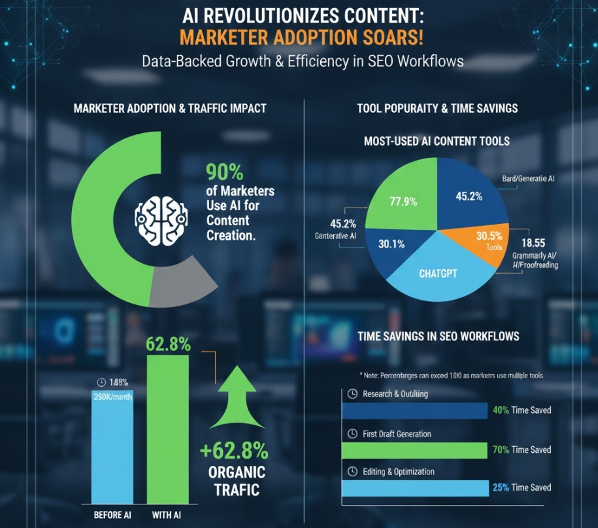 AI content creation tools dominate 2025 digital marketing landscapes, with 90% of content marketers planning to use AI for content marketing efforts, up from 83.2% in 2024. These tools streamline keyword research, content ideation, drafting, and optimization, saving creators up to 3 hours per piece of content while boosting SEO performance for small businesses by 43% moderately and 22% significantly. Popular AI writing tools like ChatGPT lead with 77.9% trust among marketers, far ahead of Claude, enabling rapid generation of blog posts, social media content, and long-form articles infused with trending keywords.